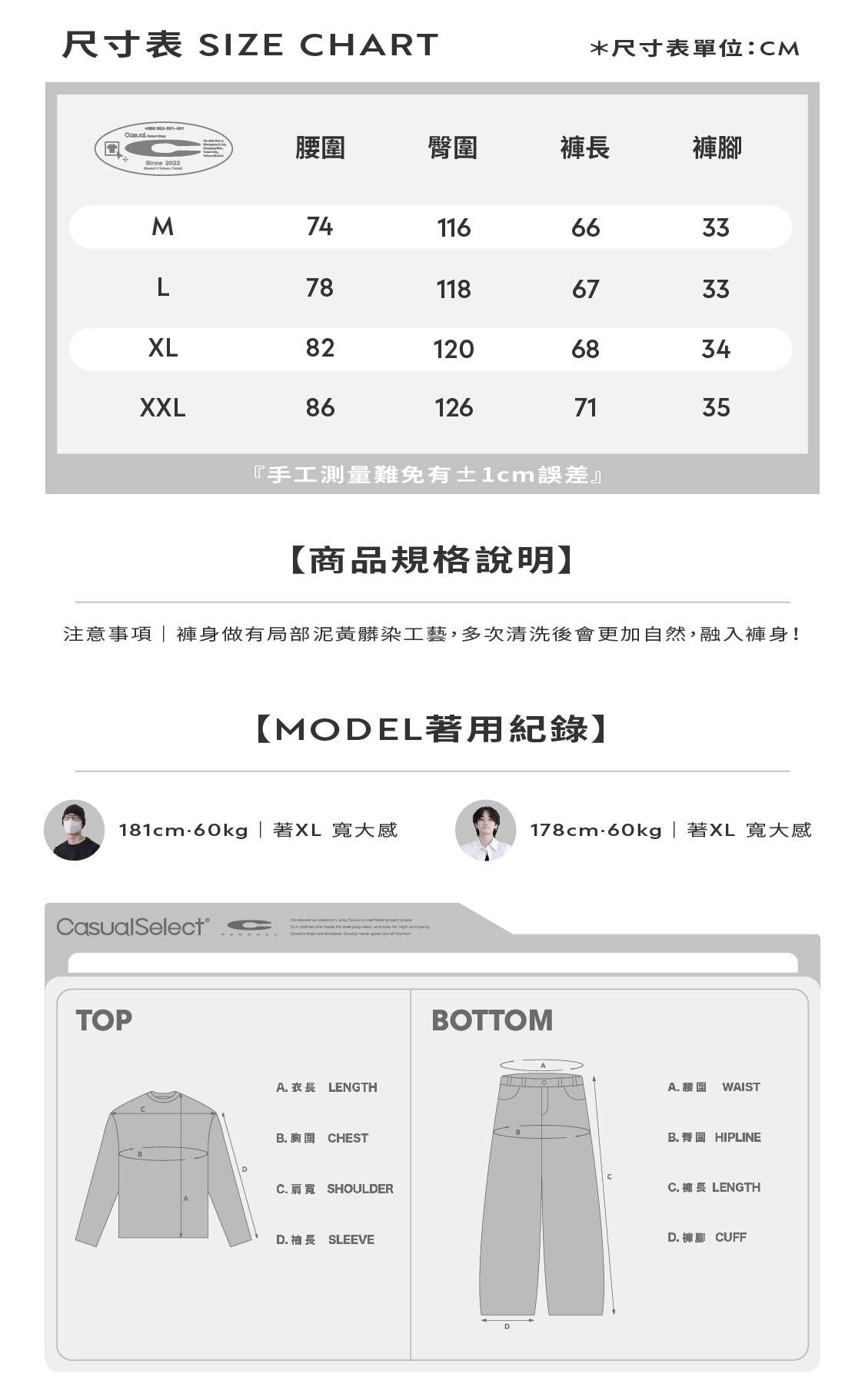 如果您在尺寸挑選上遇到困難,歡迎私訊我們並告知您的