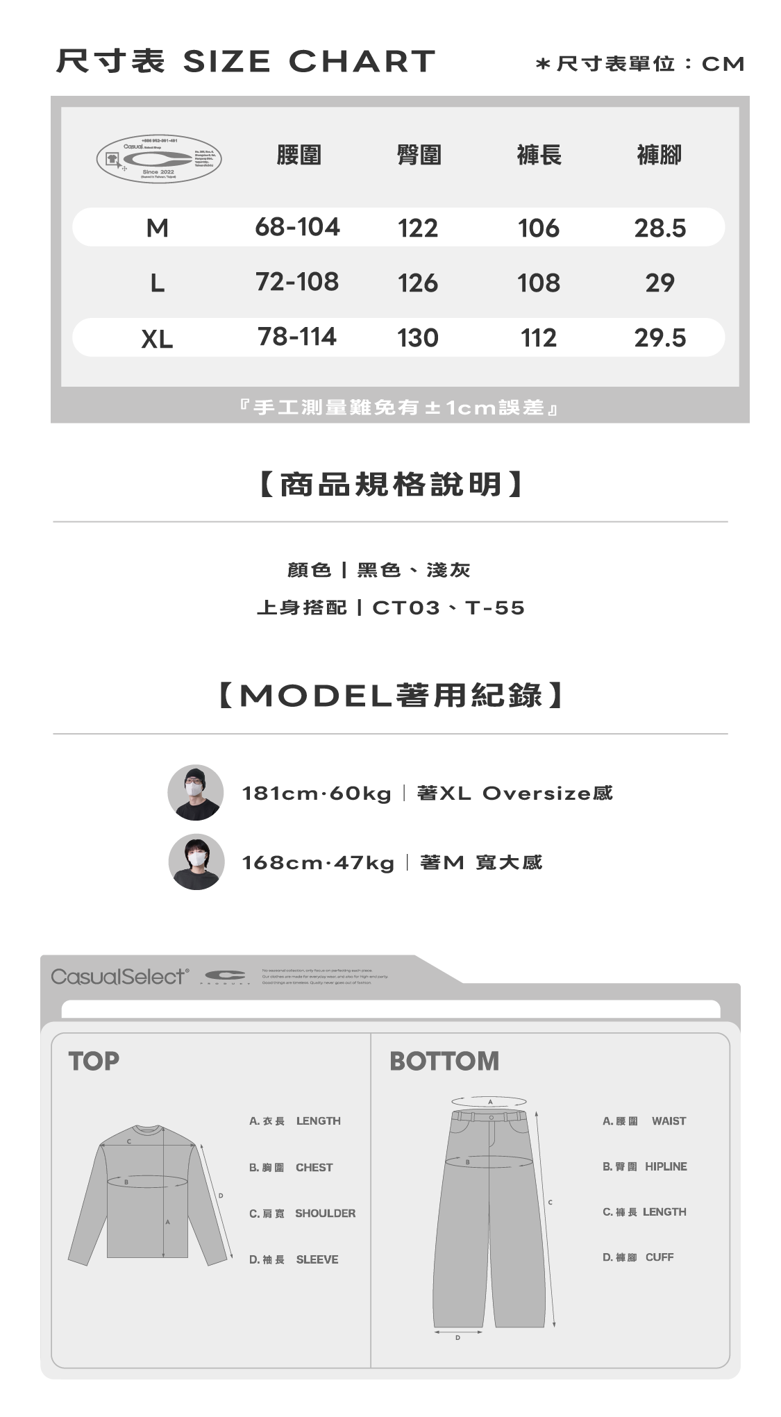 如果您在尺寸挑選上遇到困難,歡迎私訊我們並告知您的