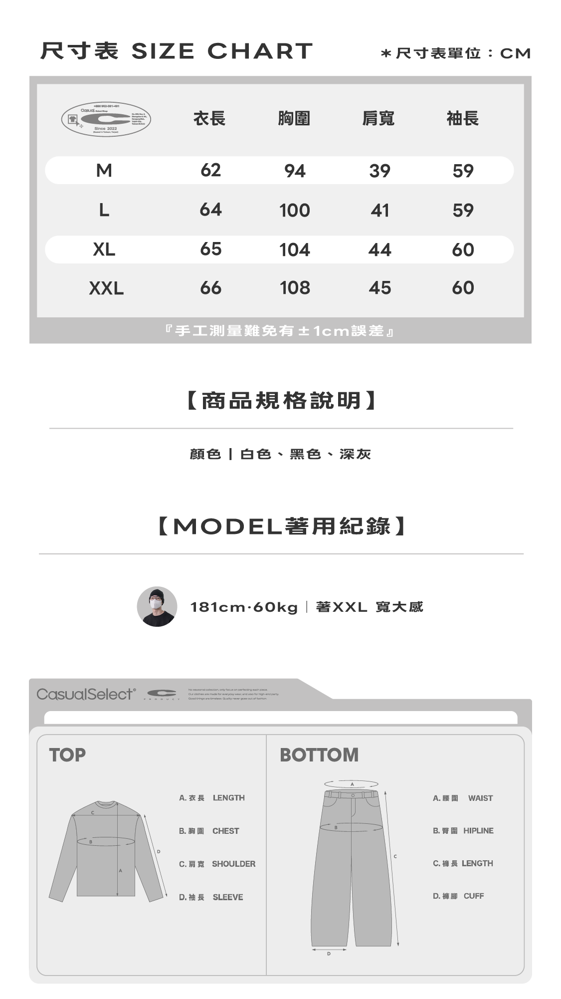 如果您在尺寸挑選上遇到困難,歡迎私訊我們並告知您的