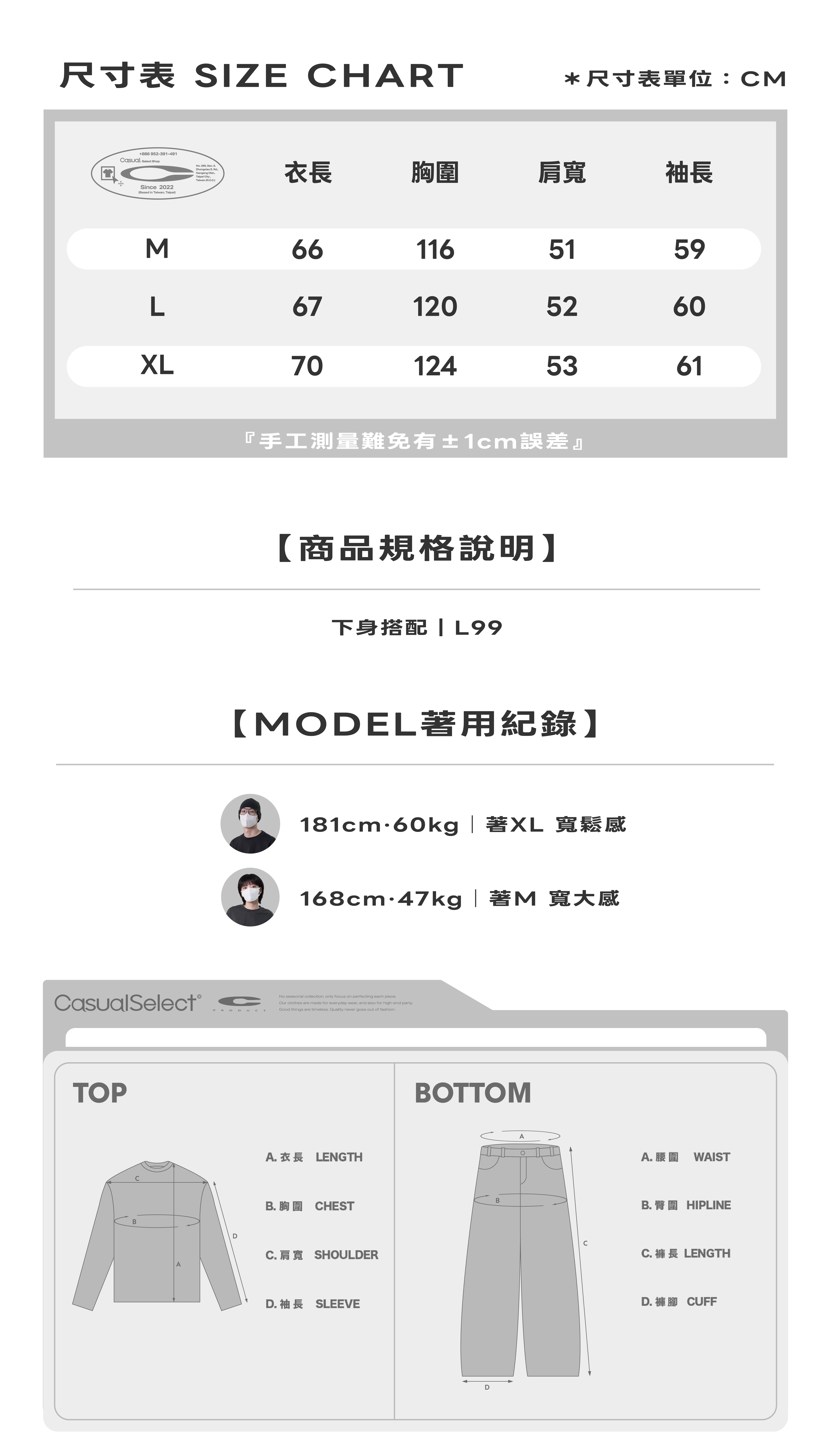 如果您在尺寸挑選上遇到困難,歡迎私訊我們並告知您的